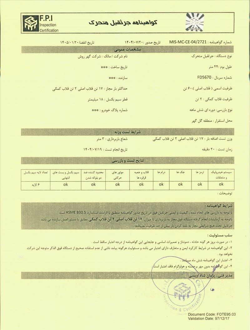 جرثقیل ۶۰ تن کارگاهی تادانو